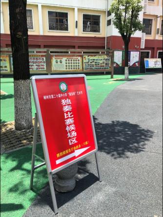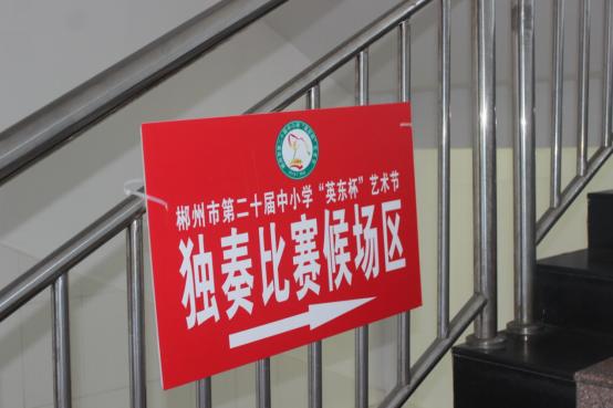 郴州市十二完小“独奏”比赛现场中的各种温馨提示牌。