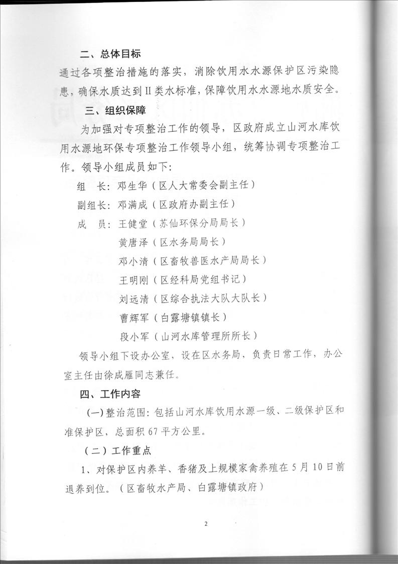 苏仙区山河水库饮用水源地环保专项整治工作实施方案